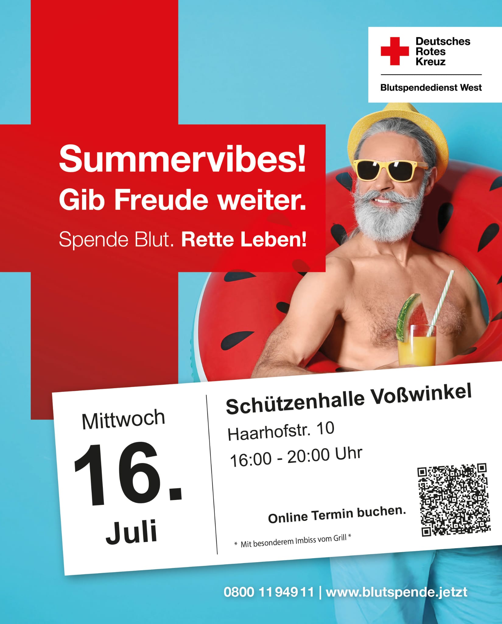 Wir verlosen unter den Besuchern des Blutspendetermins am 16. Juli in der Schützenhalle in Voßwinkel 3 x 20 Wertmarken für das Jubiläumsschützenfest zum 525-jährigen Bestehen der Schützenbruderschaft St. Johannes Voßwinkel vom 29. bis 31.08.25.